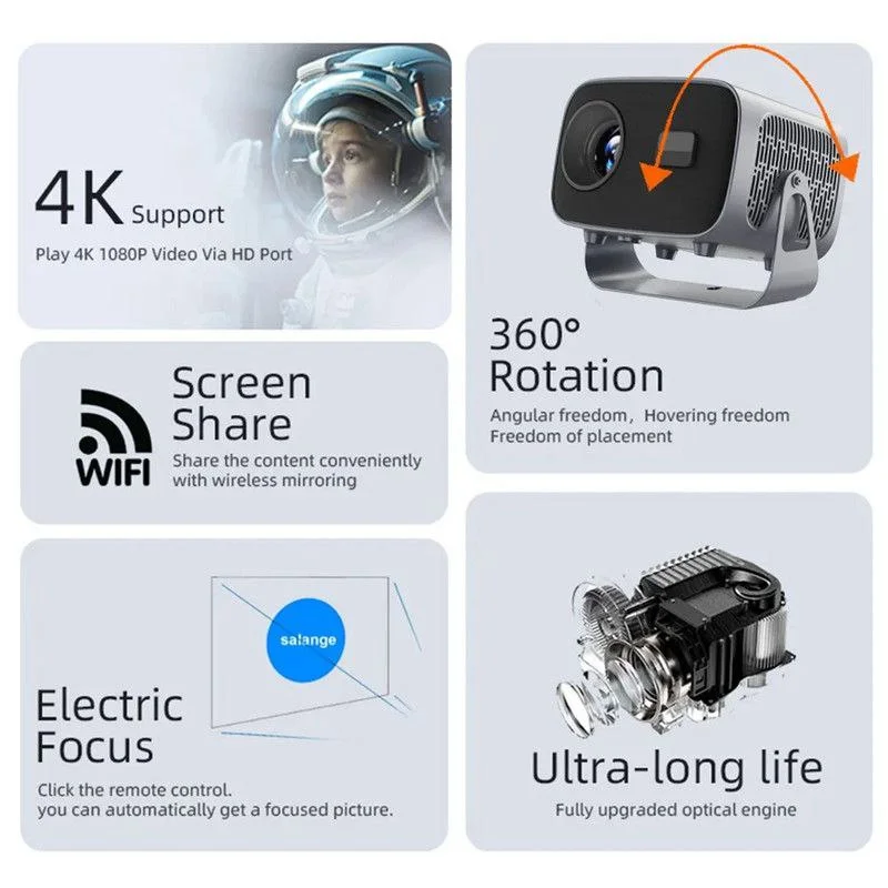 با فناوری Miracast یا AirPlay میتوانید صفحهی گوشی را مستقیماً روی پروژکتور نمایش دهید؛ عالی برای نمایش عکسها و ویدئوهای خانوادگی.